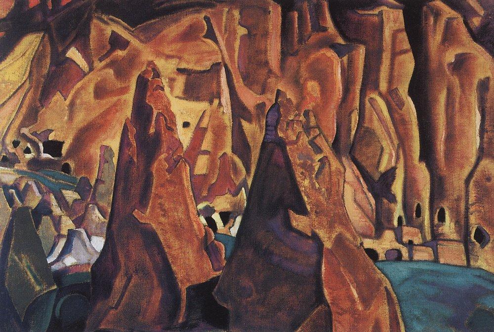 Русско-индийский художник Николай Константинович Рерих Галерея мистической живописи. Пещеры в скалах. Нью-Мексико, 1921 |
