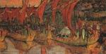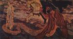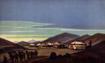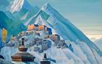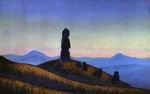 Эта система шла в пейзажном жанре во многом еще от А.И.Куинджи. Однако сложная символичность, ассоциативность представлений, образов рождает в творчестве Рериха новые, чисто рериховские приемы.
