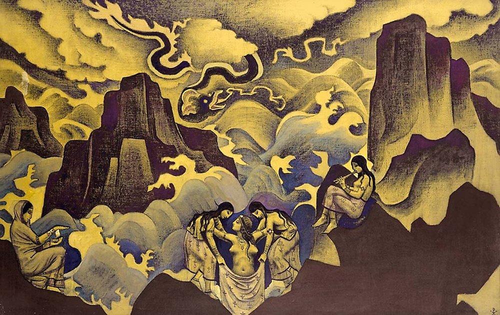 Упанишады, «Бхагават-Гита». Индийские метафизические доктрины, их взгляд на космические и исторические циклы захватили Рериха, как захватили многих. Тибет и тибетские чудотворцы были притягательны особо. Как раз появилось несколько книг о культуре и истории Тибета, труды Ухтомского, Потанина, Пржевальского.